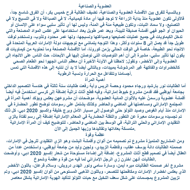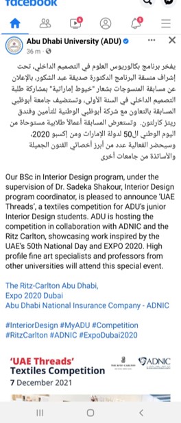 Textiles competition with sponsorship by ADNIC and Ritz Carlton